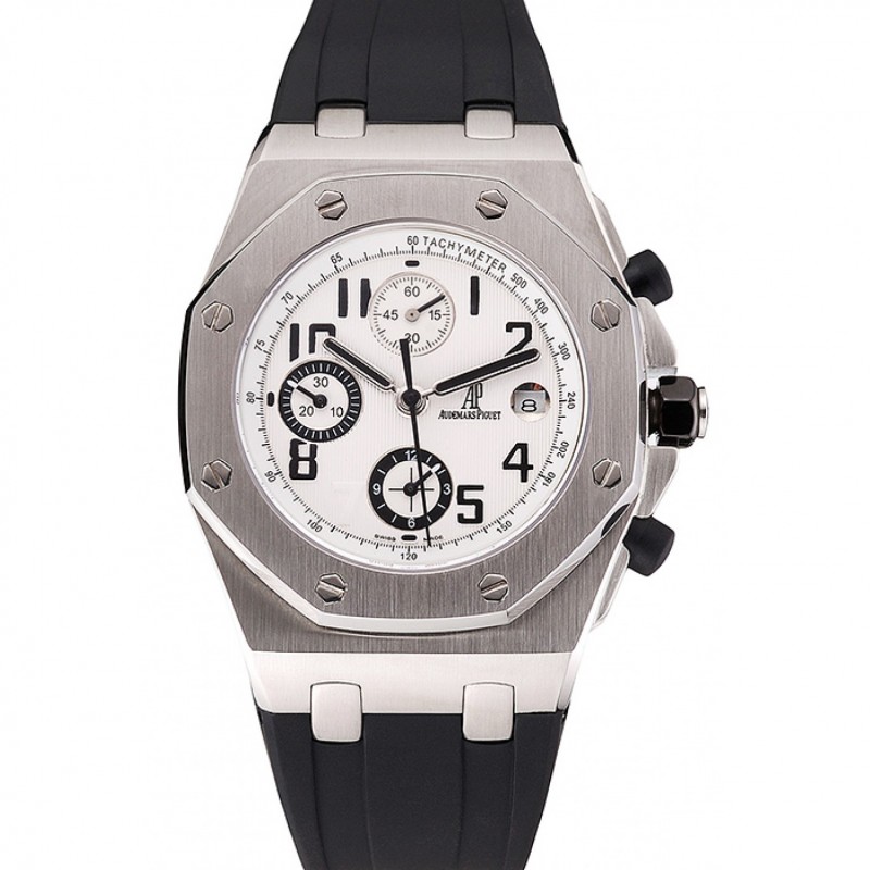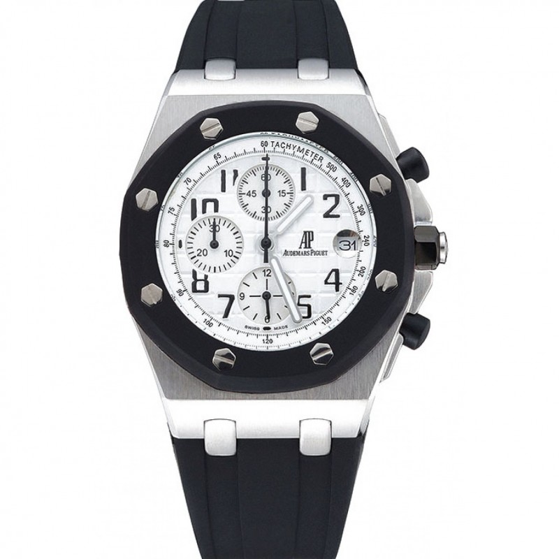 Svizzera Audemars Piguet Royal Oak Offshore quadrante bianco Cassa in acciaio con cinturino in gomma nera 622.853