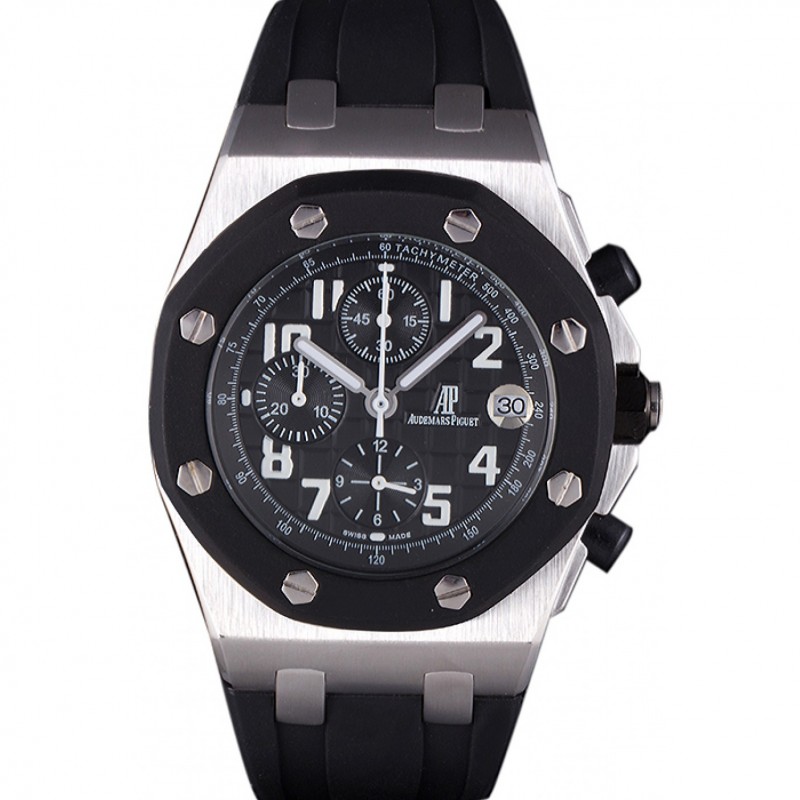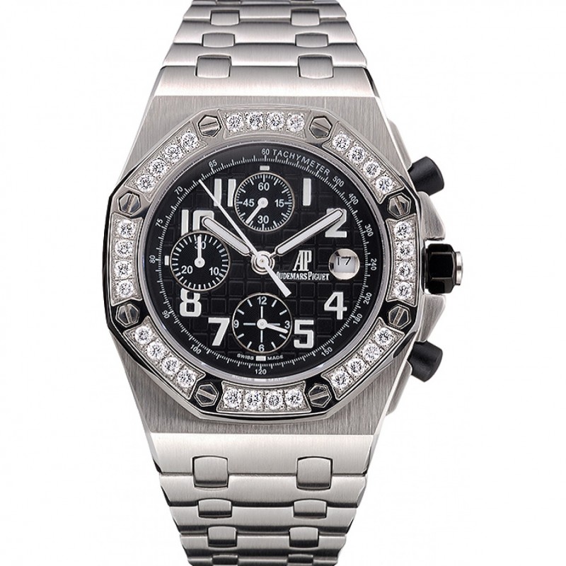 Svizzera Audemars Piguet Royal Oak Offshore quadrante nero Cassa in acciaio diamante lunetta in acciaio e bracciale 622.873