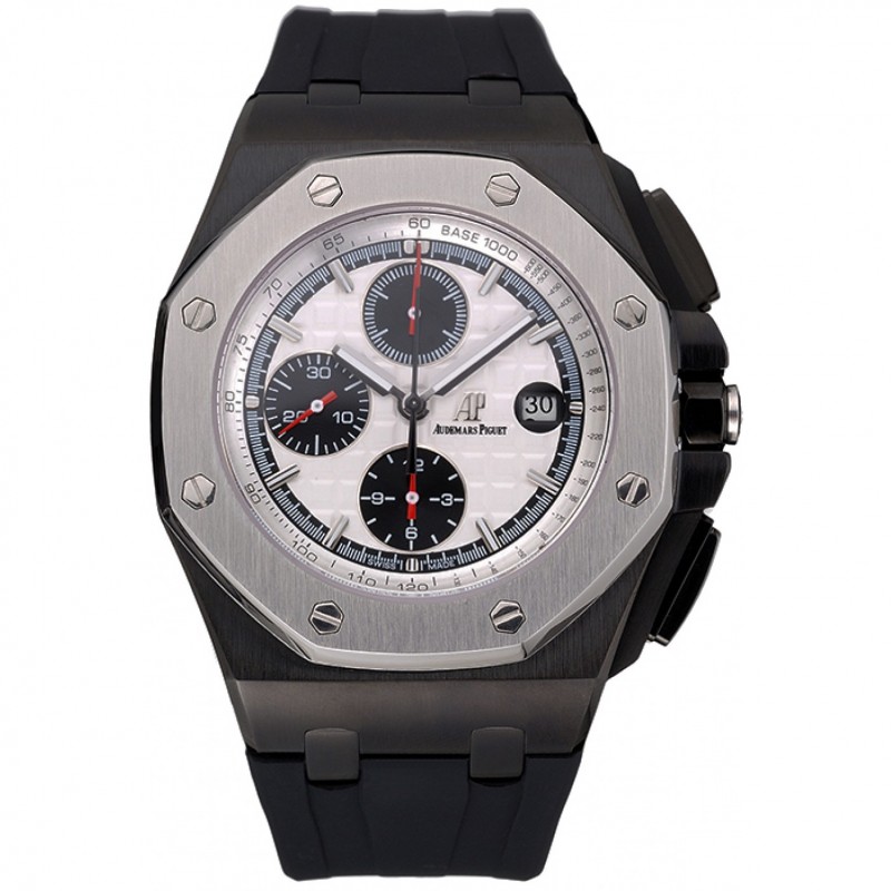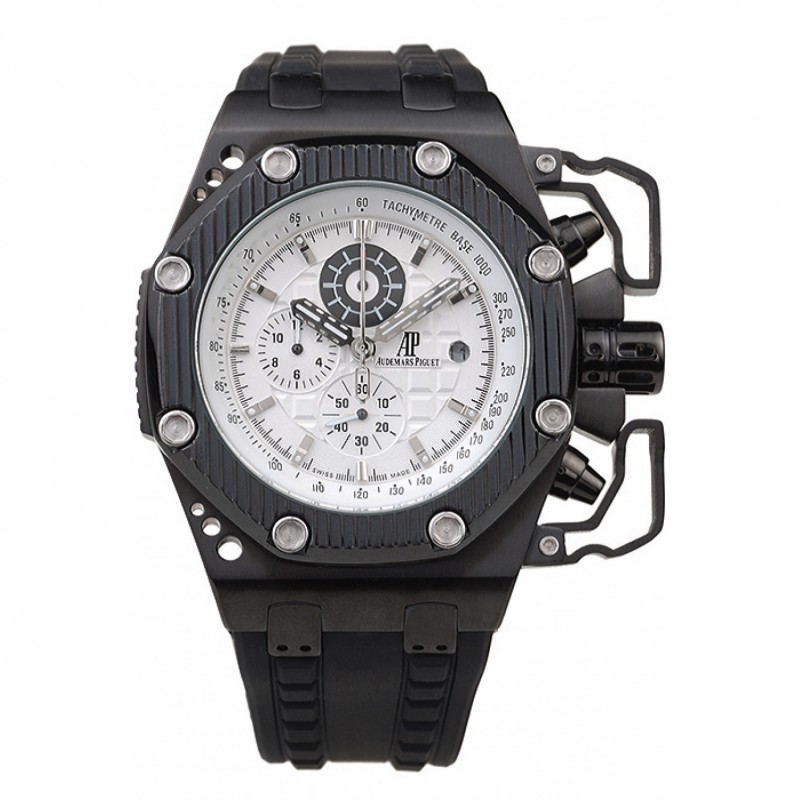 Svizzera Audemars Piguet Royal Oak Offshore Chronograph quadrante bianco Cassa Acciaio Nero Nero Cinturino in gomma 622.862