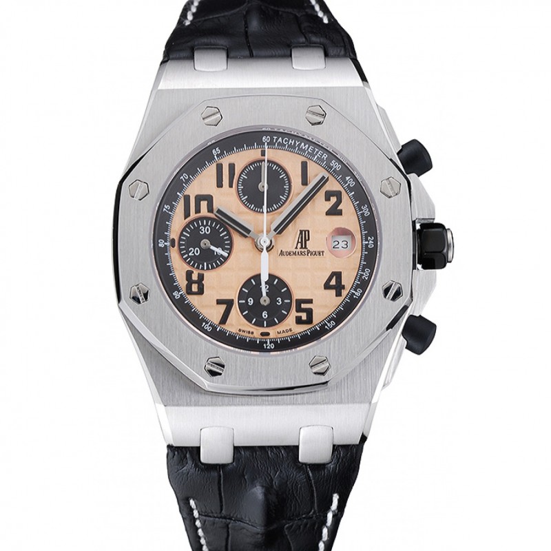 Svizzera Audemars Piguet Royal Oak Offshore Gold Quadrante Cassa in acciaio cinturino in pelle nera 622.849