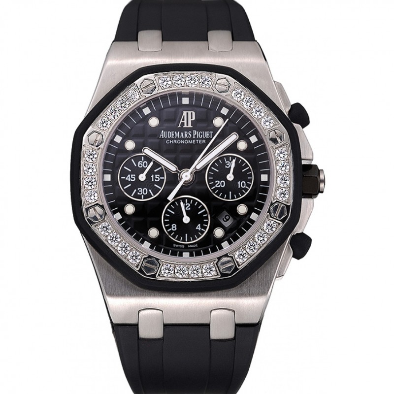 Svizzera Audemars Piguet Royal Oak cronometro Quadrante Nero Diamante Lunetta Cassa in acciaio con cinturino in gomma nera 622.867