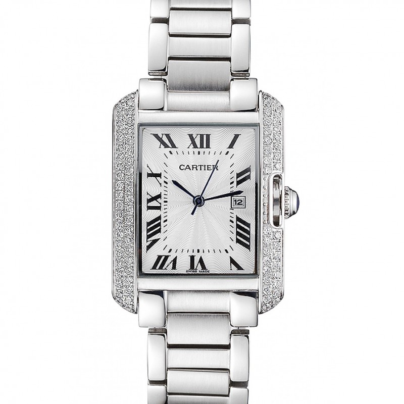 Cartier Tank Anglaise 30mm diamanti Quadrante bianco Cassa in acciaio Bracciale in acciaio inossidabile