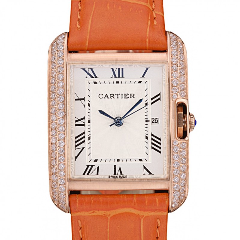Cartier Tank Anglaise 30mm Diamonds quadrante bianco in pelle oro bracciale Case Orange