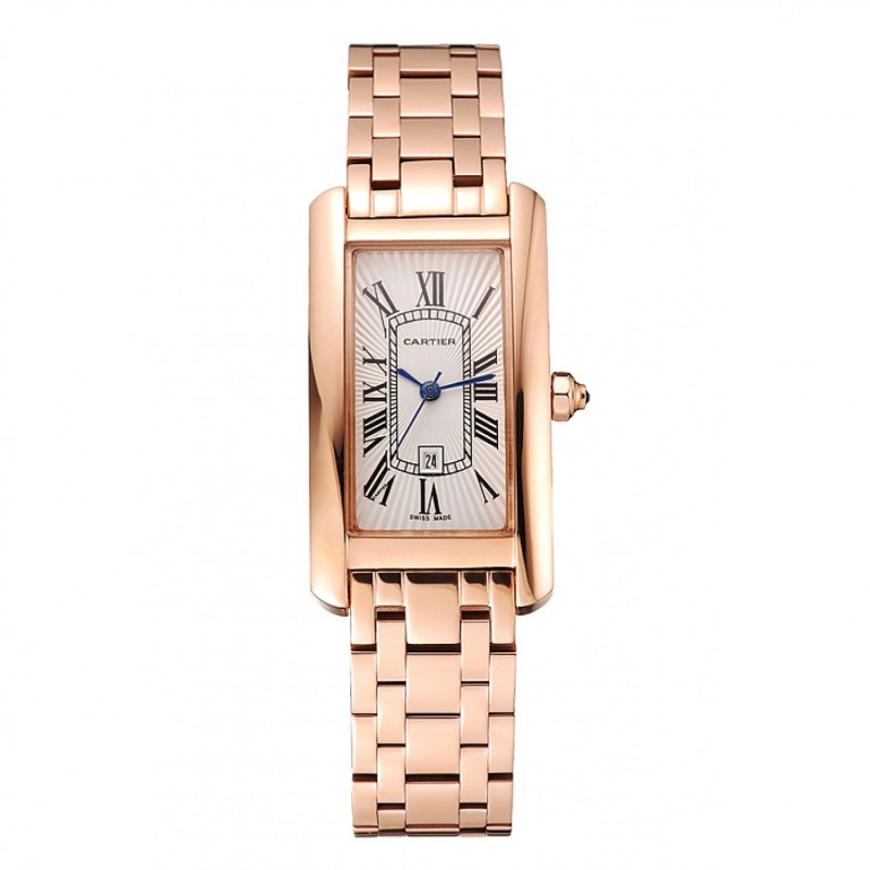Cartier Tank Americaine quadrante bianco Rosa cassa e bracciale in oro 1453780