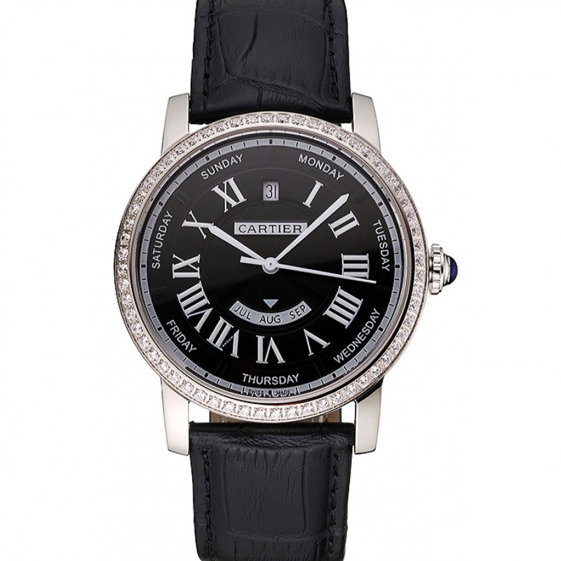 Cartier unità De Cartier quadrante bianco il braccialetto di cuoio d’argento della cassa del diamante nero 1454215