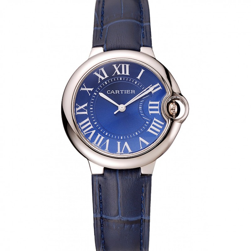 Cartier Ballon Bleu d’argento lunetta con quadrante blu scuro e blu scuro cinturino in pelle di 621.555