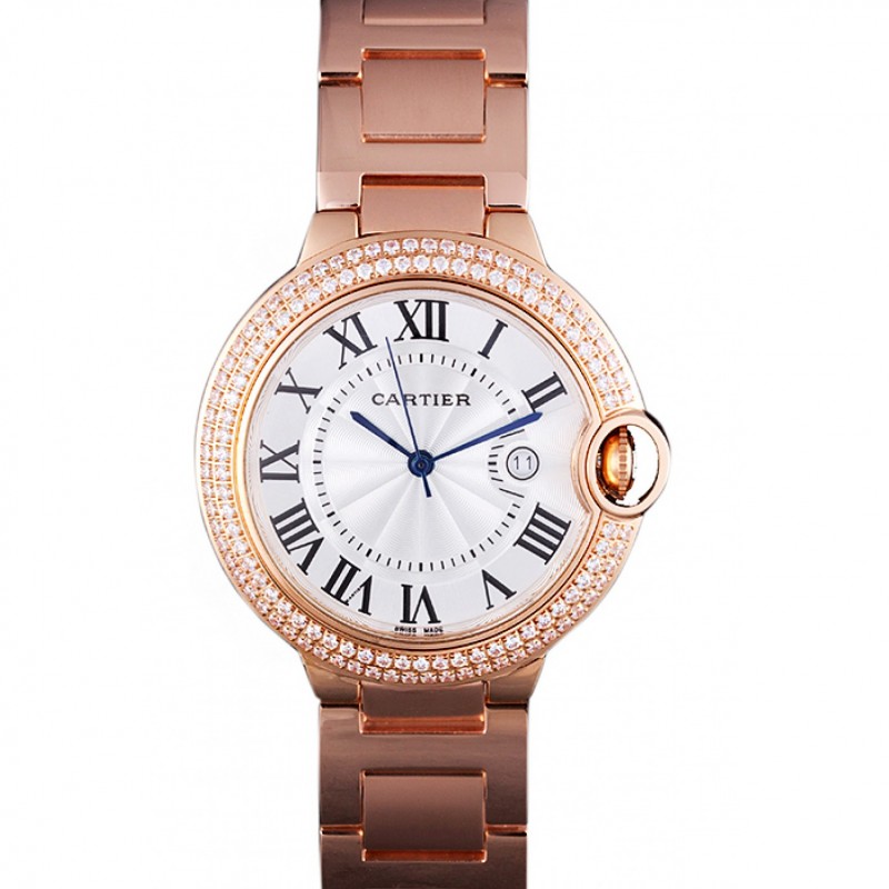 Cartier Ballon Bleu 42mm diamanti Quadrante bianco Cassa oro rosa e bracciale