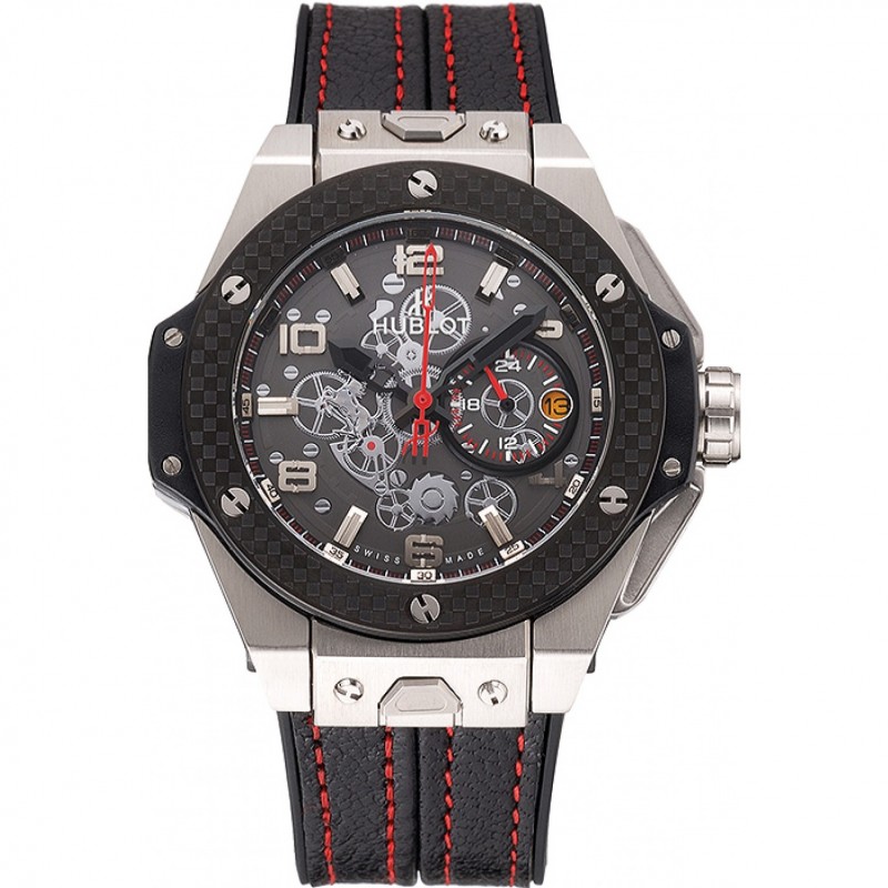 Hublot Big Bang Ferrari quadrante nero e pelle nera Lunetta Cassa in acciaio Cinturino in 622.767