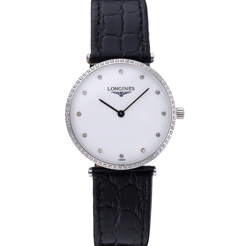 Longines La Grande Classique quadrante bianco nero della fascia del cuoio Femme 622128