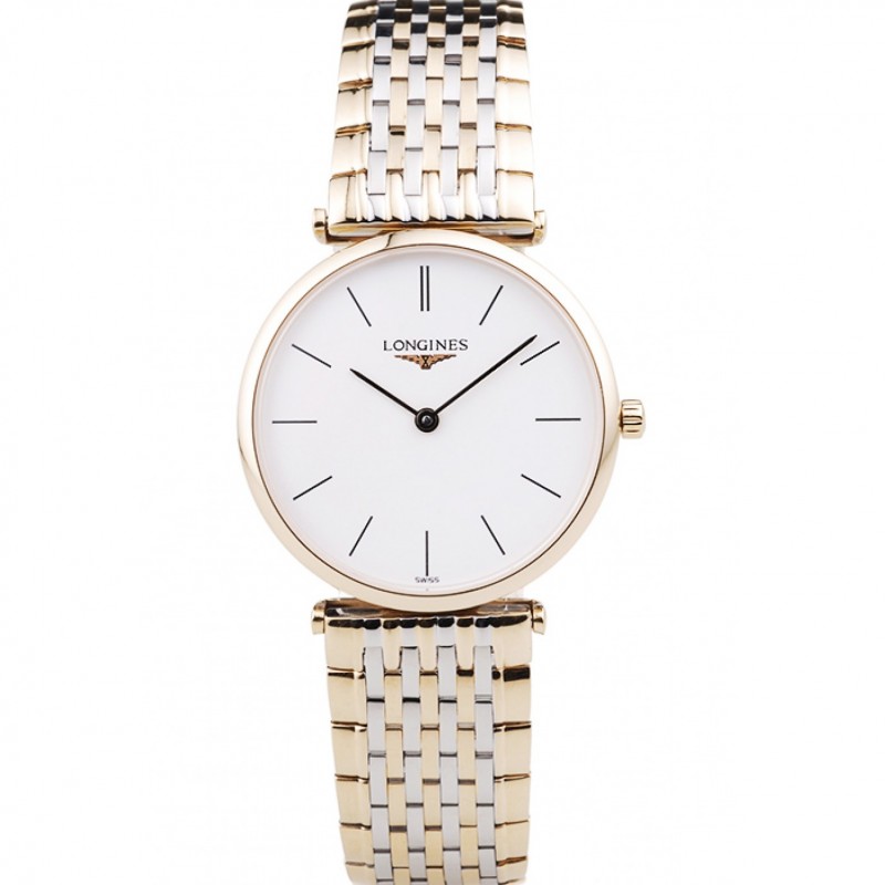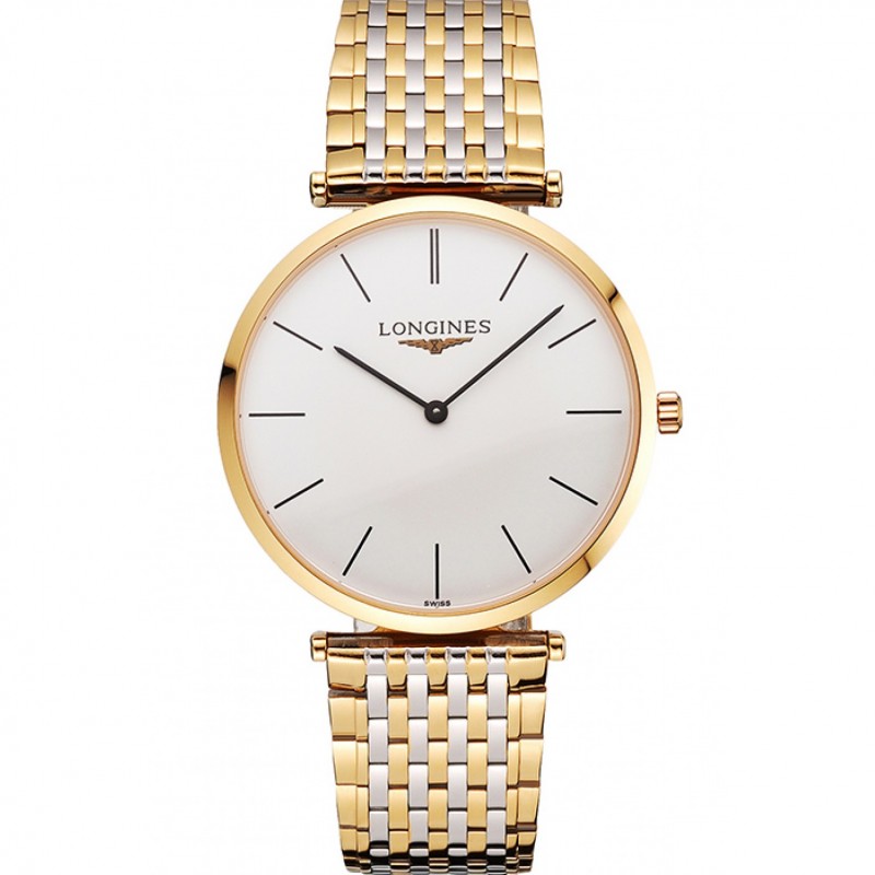 Svizzero Longines Grande Classique quadrante bianco cassa in oro Bracciale Two Tone