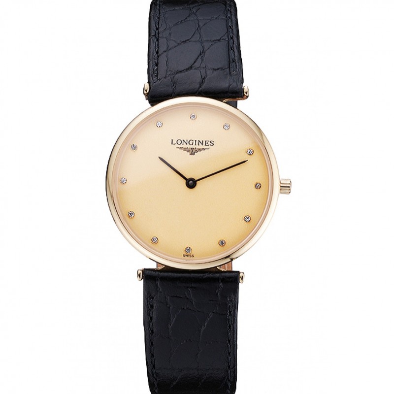 Longines La Grande Classique Quadrante Champagne banda in pelle Black Diamond Marcatori Homme 622.121