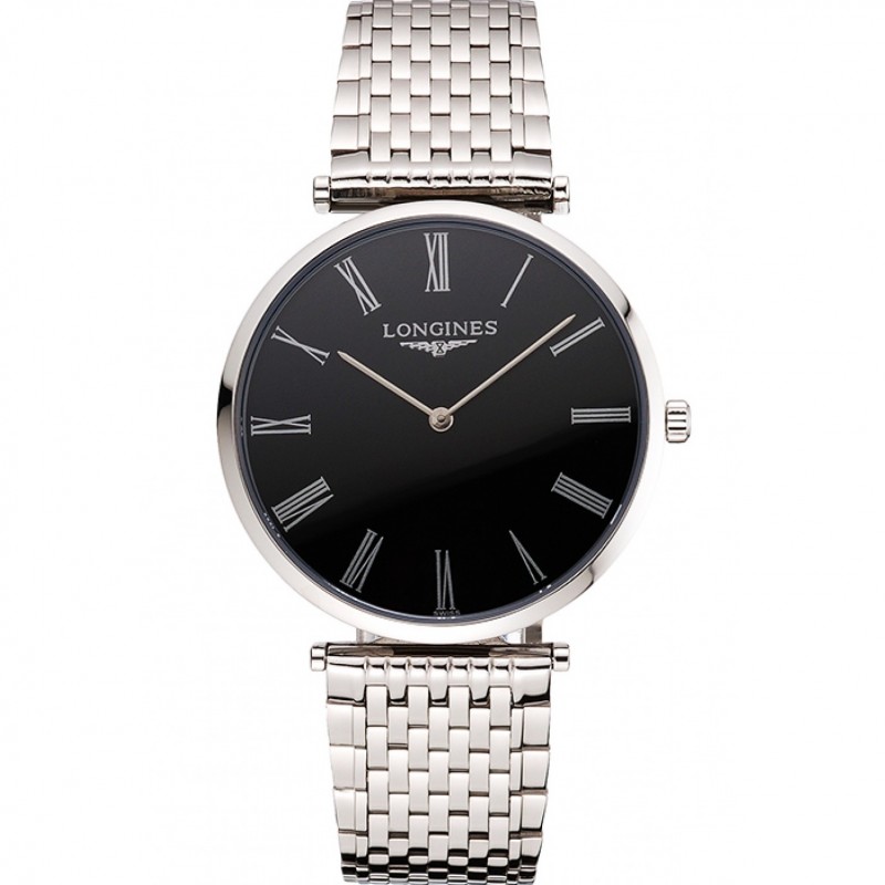 Svizzero Longines Grande Classique quadrante nero Cassa in acciaio inossidabile e numeri romani Bracciale
