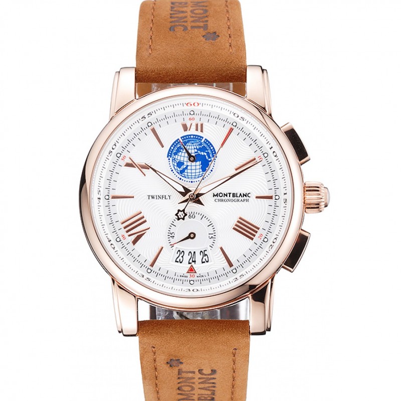 Montblanc Twinfly Chronograph quadrante bianco bracciale in pelle marrone scamosciata 1454116