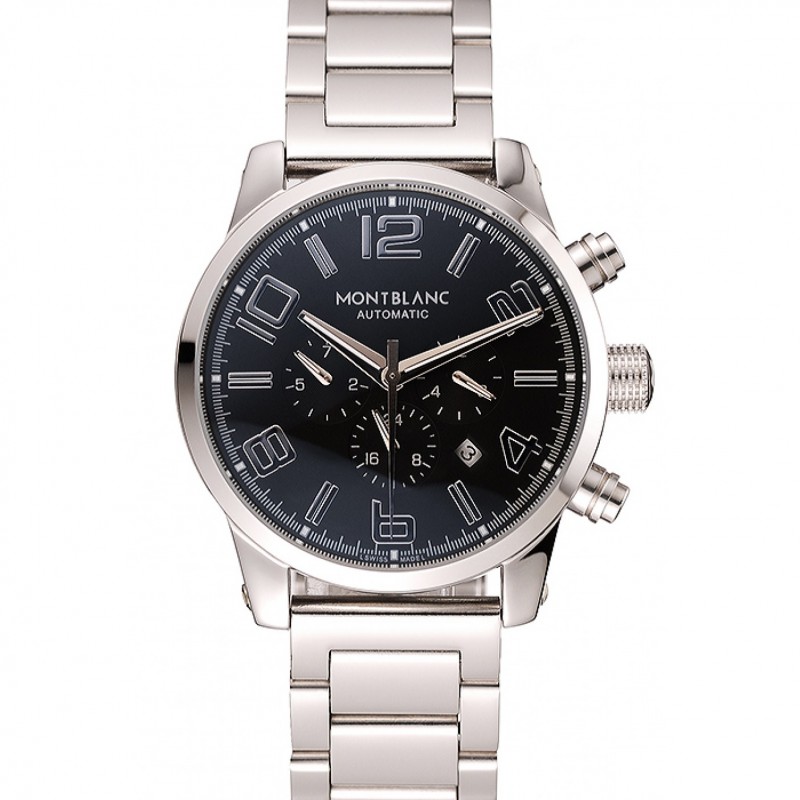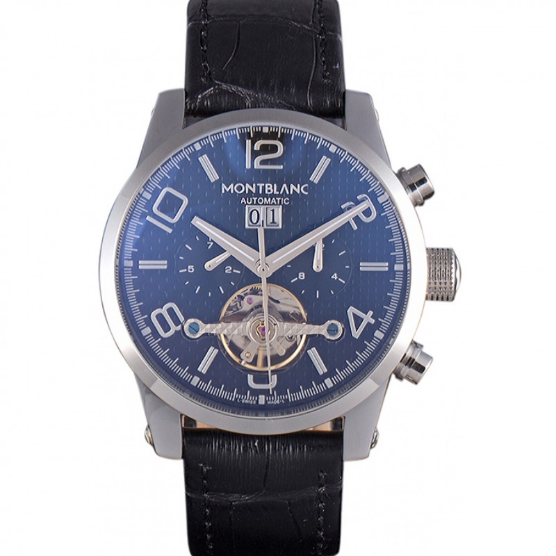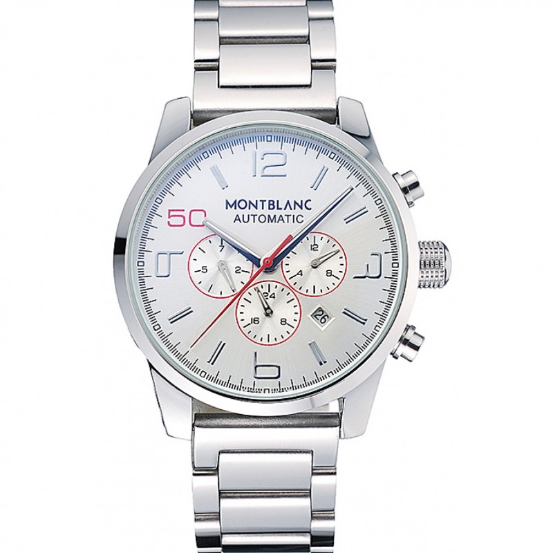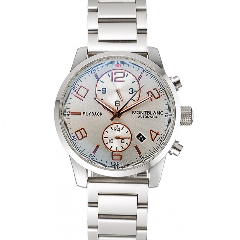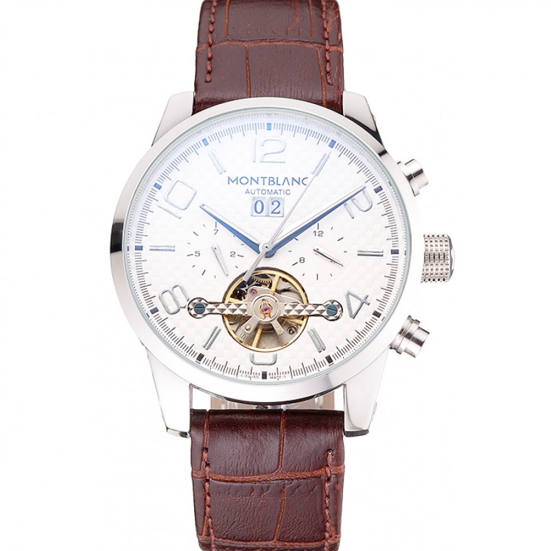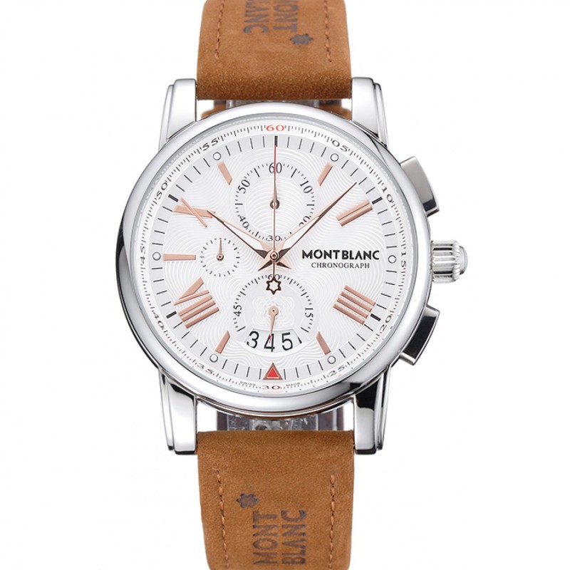 Montblanc Chronograph quadrante bianco in pelle marrone scamosciata Silver Case Bracciale 1.454.115
