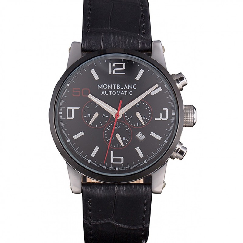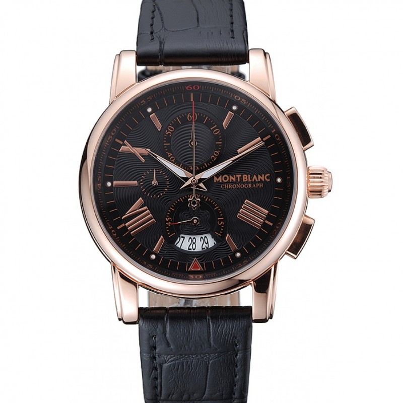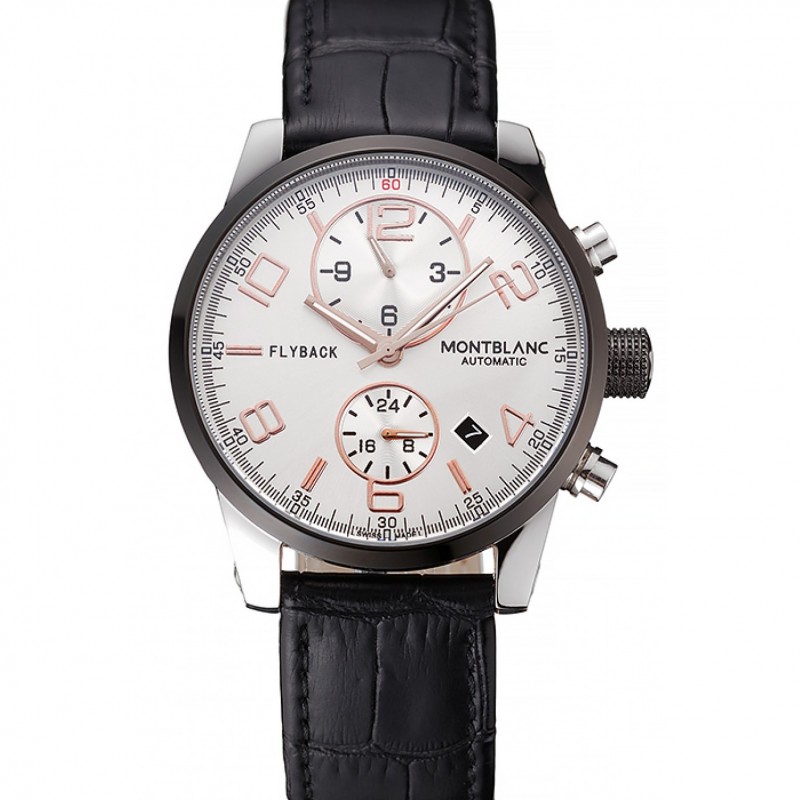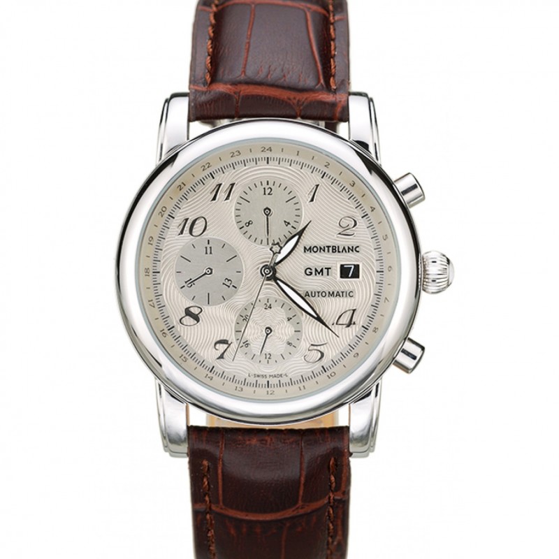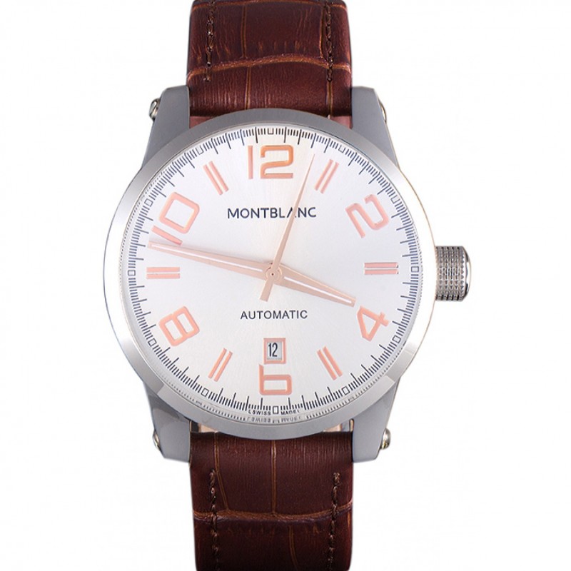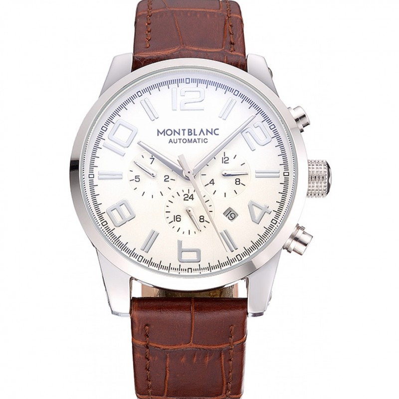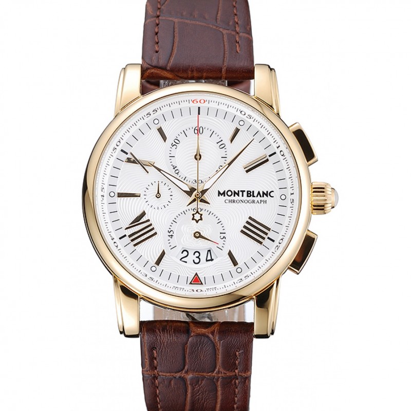 Montblanc Chronograph quadrante bianco bracciale in pelle marrone cassa in oro 1.454.113
