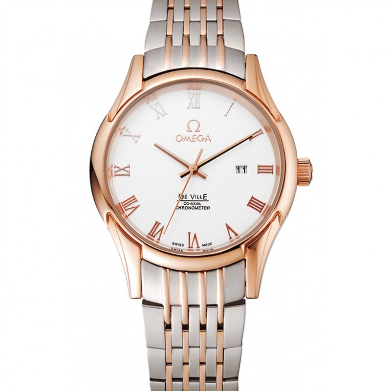 Omega De Ville quadrante bianco cassa in oro rosa due braccialetto Tone 1453781
