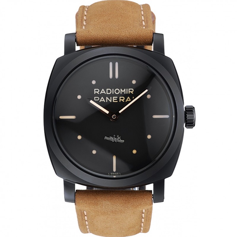 Panerai Radiomir 1940 3 Giorni Ceramica quadrante nero braccialetto in pelle marrone 1.454.229