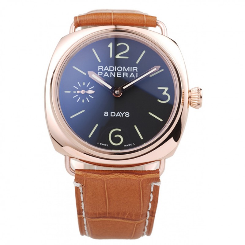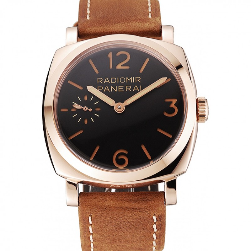 Panerai Radiomir cassa in oro rosa quadrante nero in pelle marrone 98136 Strap