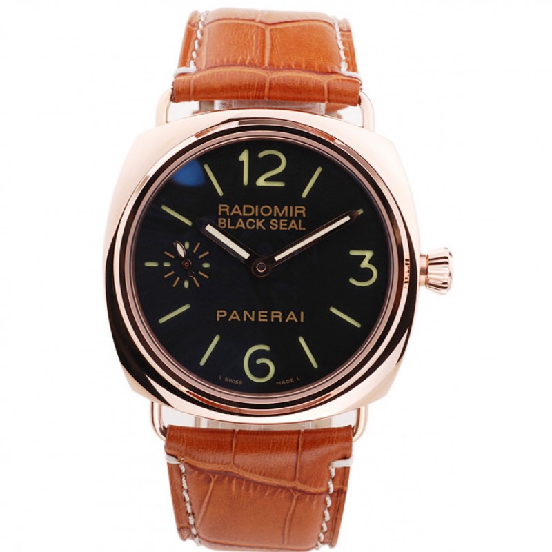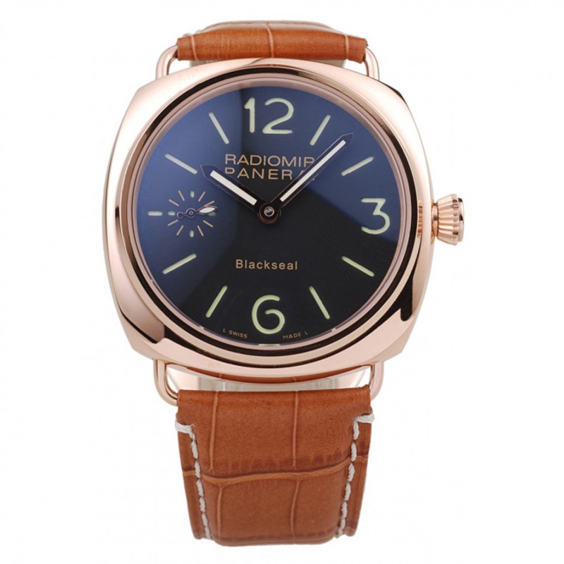 Panerai Radiomir Black Seal quadrante nero Bracciale in pelle cassa in oro rosa Brown