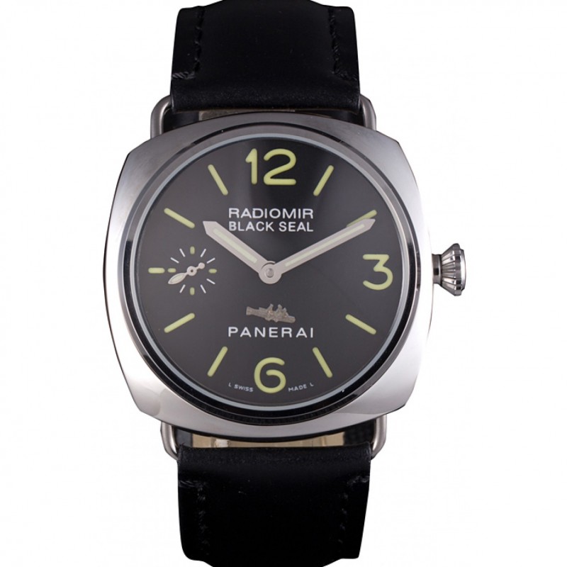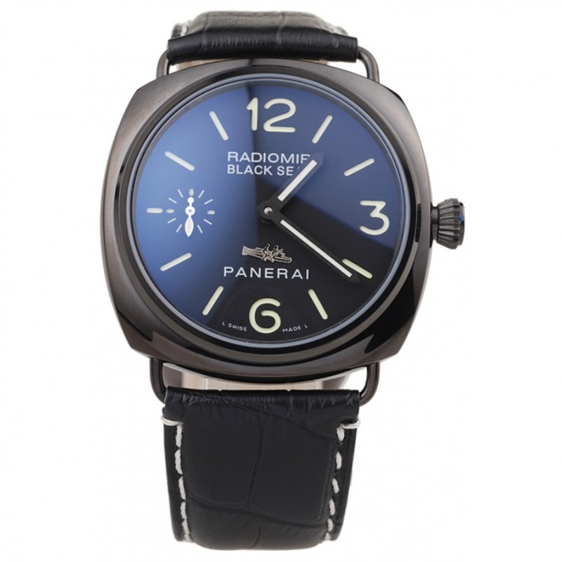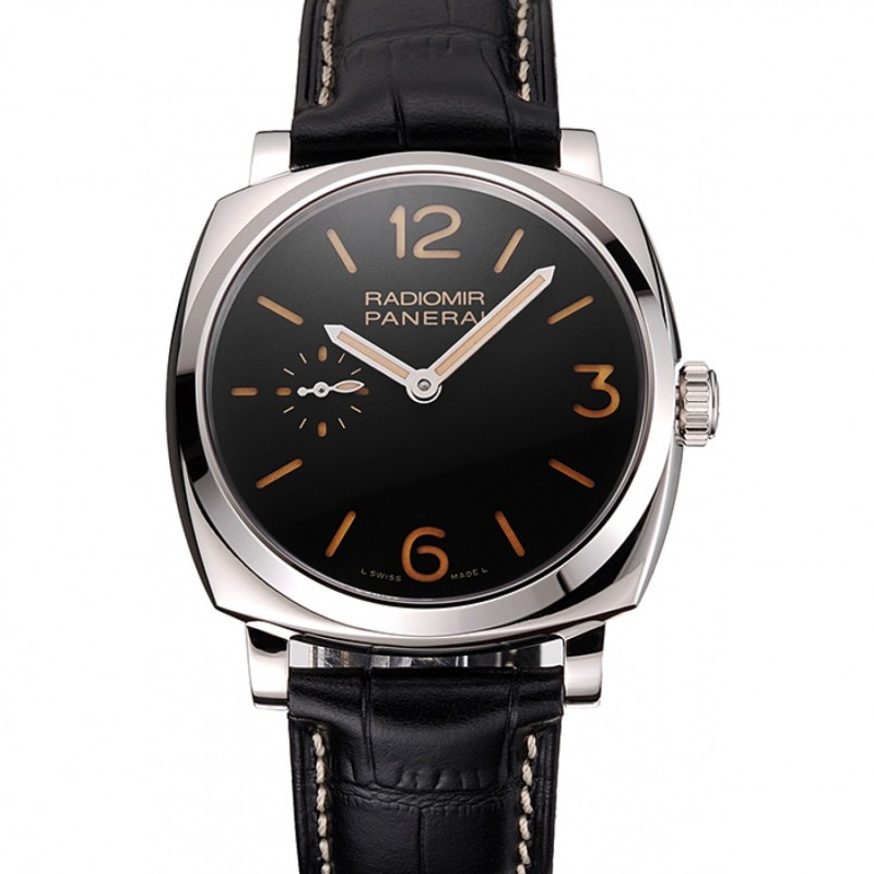 Panerai Radiomir lucidato Cassa in acciaio quadrante nero in pelle nera Cinturino 98140