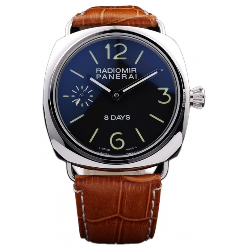 Panerai Radiomir 8 Giorni quadrante nero Bracciale in pelle marrone