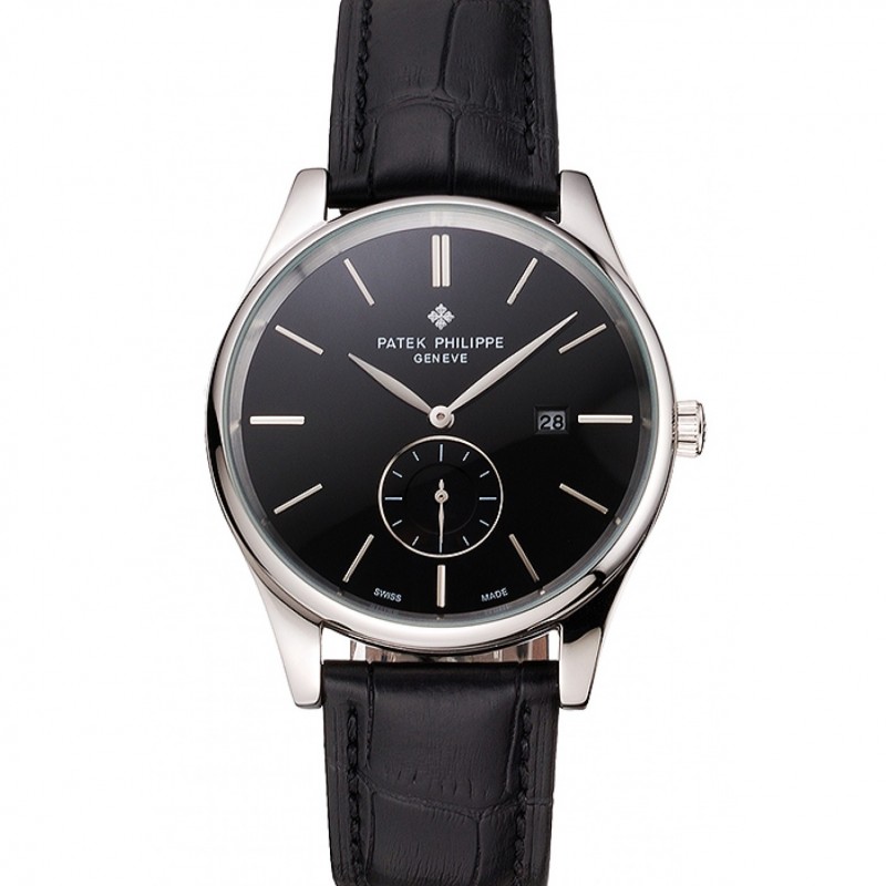 Patek Philippe Calatrava Geneve cristallo con borchie ore Marker quadrante bianco cinturino in pelle nera