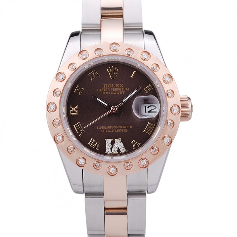 Diamanti Rolex Datejust in oro rosa lucidato lunetta Brown Dial 7475