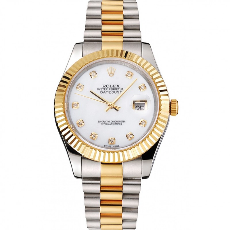 Rolex Datejust quadrante bianco diamante dei contrassegni di ora lunetta in oro Cassa in acciaio Bracciale in Two Tone