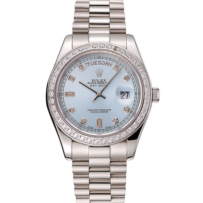 Rolex Day-Date Ice Blue Dial braccialetto di diamanti cassa del diamante Numeri in acciaio inox 1.453.963