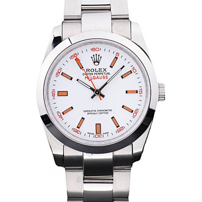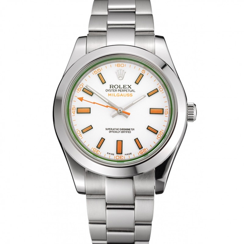 Svizzero Rolex Milgauss Quadrante Bianco Cassa in acciaio arancione Marcature acciaio e bracciale