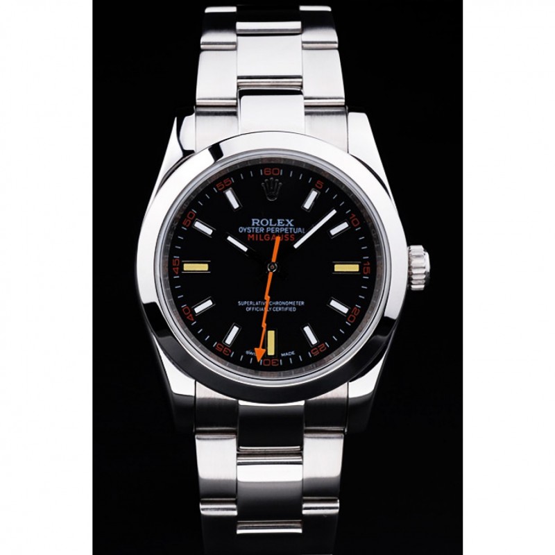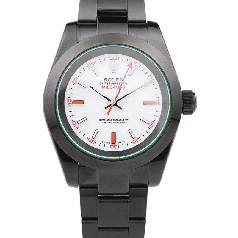 Svizzero Rolex Milgauss Quadrante Nero Cassa in acciaio arancione Marcature acciaio e bracciale