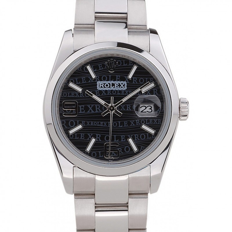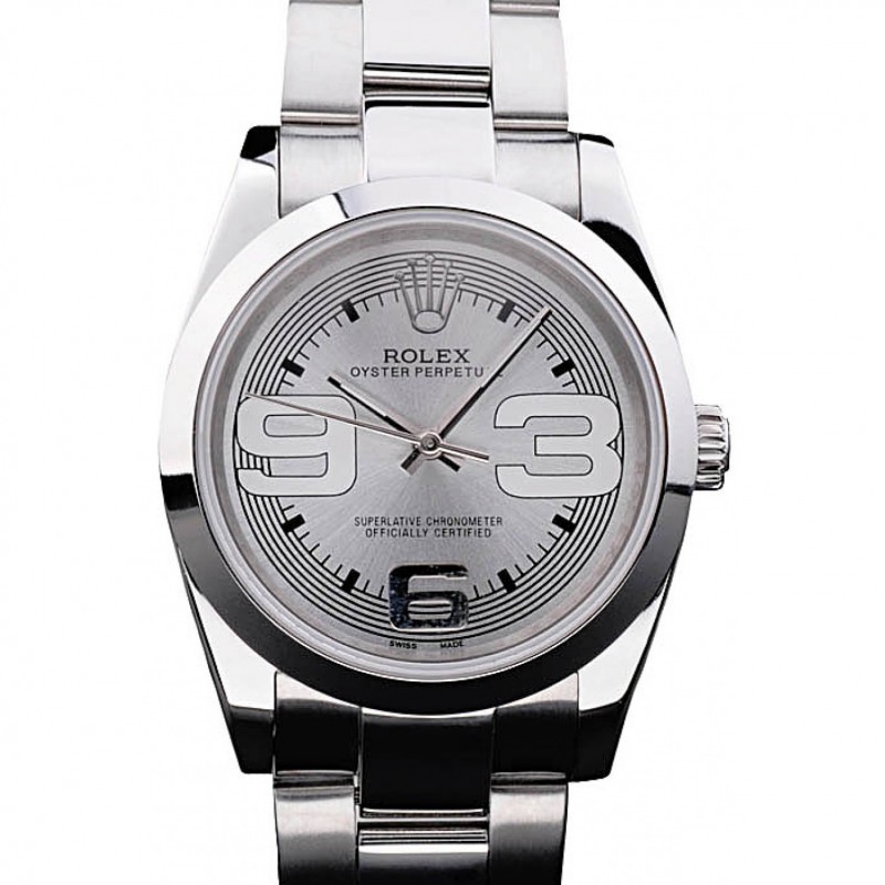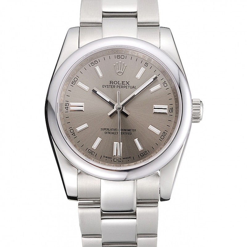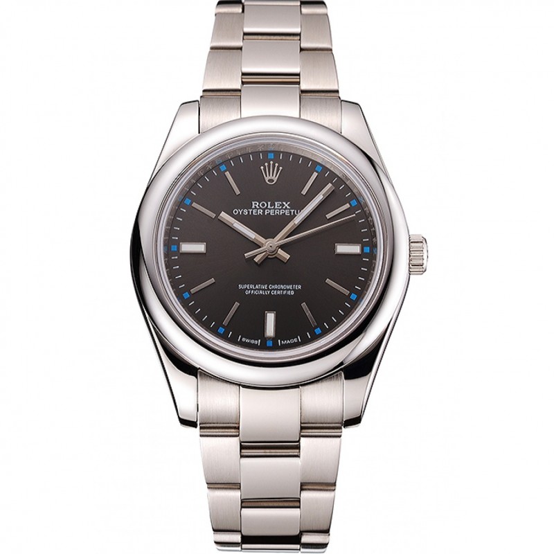Rolex Oyster Perpetual scuro Rodio caso quadrante e bracciale in acciaio