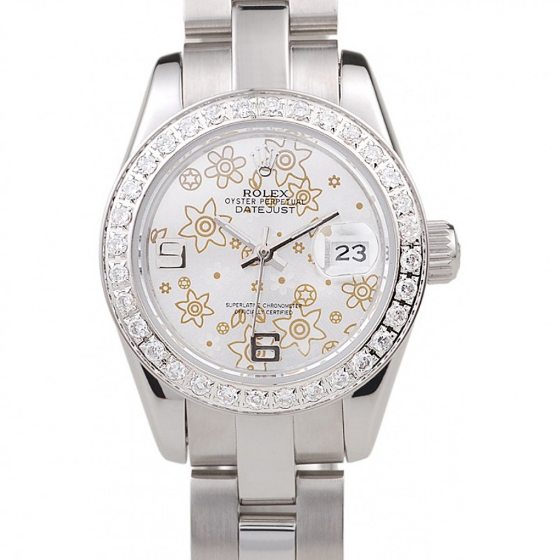 Rolex Datejust in acciaio inox lucido Fiori d’argento Diamond Dial placcato 98082