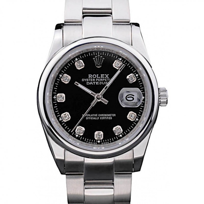 Rolex Day-Date Svizzero quadrante nero braccialetto di diamanti cassa del diamante Numeri in acciaio inox 1453966