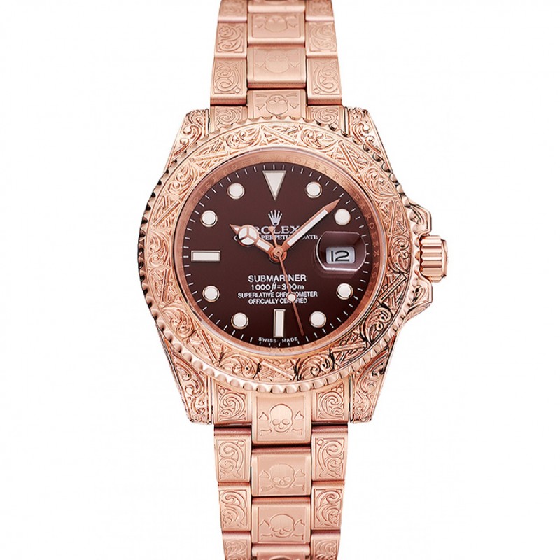 Svizzero Rolex Submariner teschio in edizione limitata Quadrante Marrone Rosa cassa e bracciale in oro 1454087