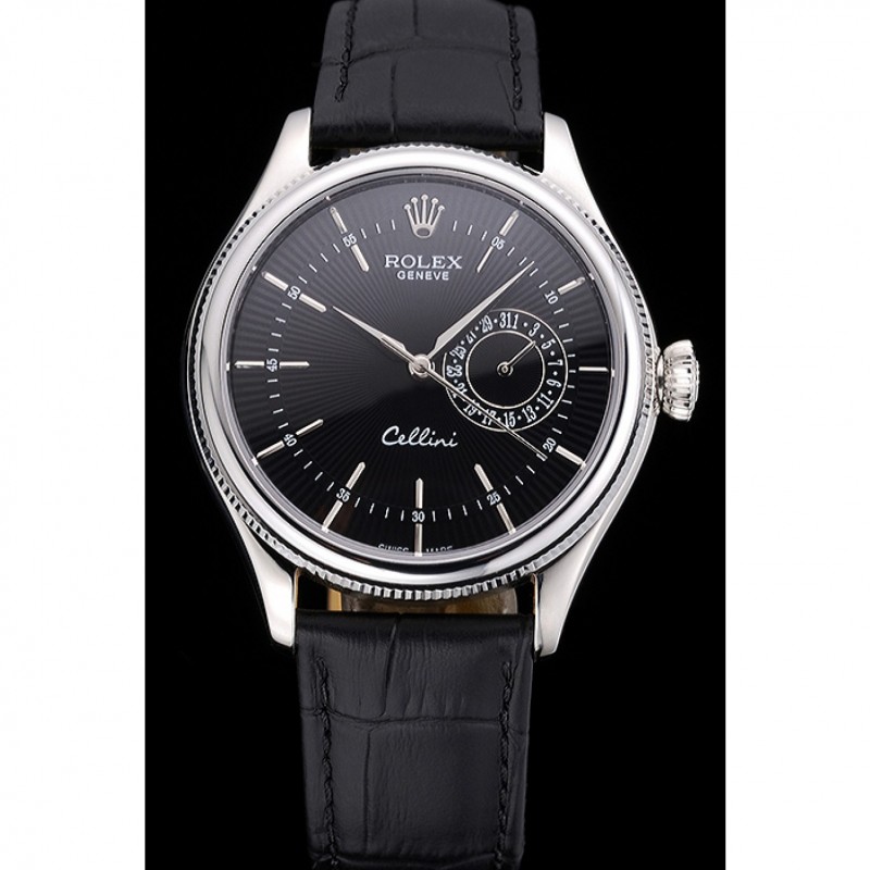 Rolex Cellini quadrante nero Bracciale in pelle Cassa in acciaio nero 622.724