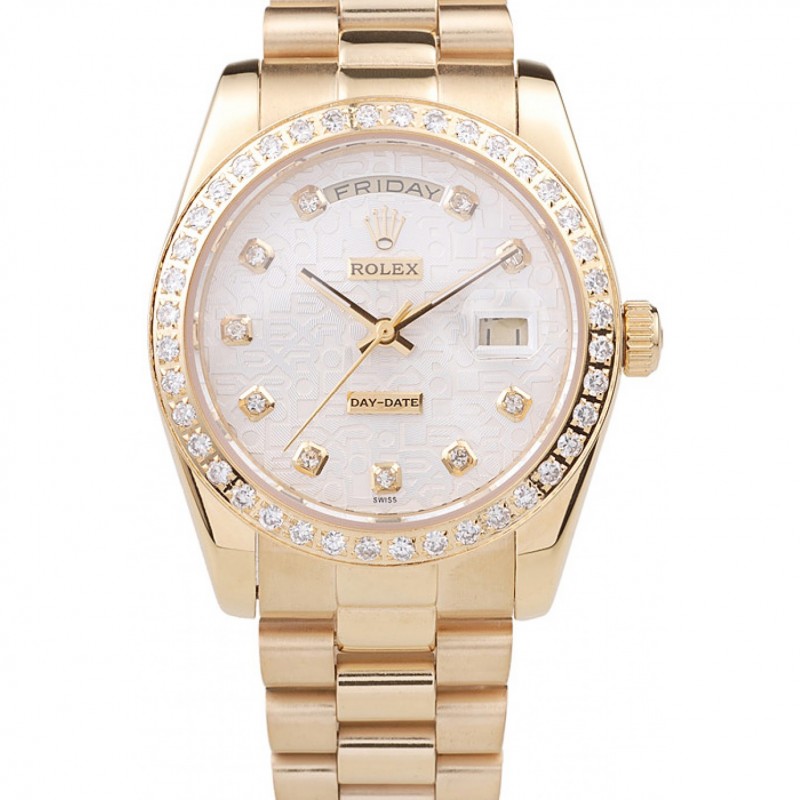Rolex Day-Date 18k quadrante giallo oro placcato in acciaio inossidabile bianco