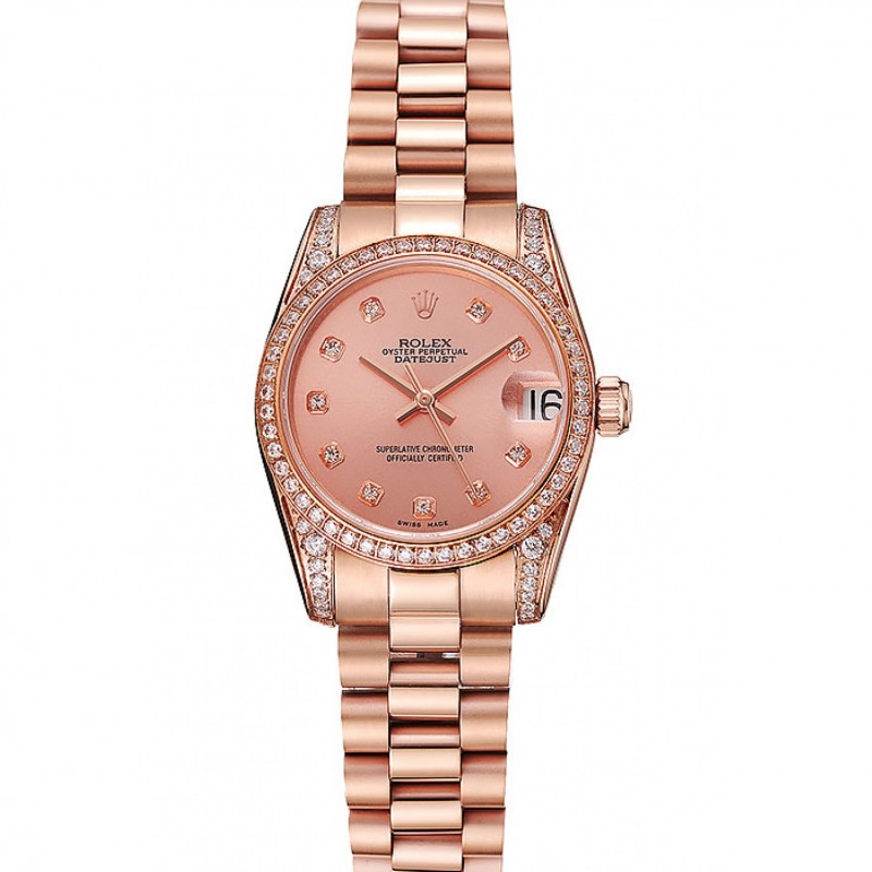 Svizzero Rolex Datejust in oro rosa Quadrante cassa del diamante in oro rosa Bracciale 1453977