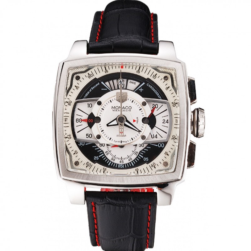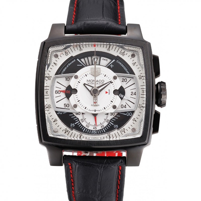 Tag Heuer Monaco Nero-Rosso pelle traforata Strap quadrante bianco 80307