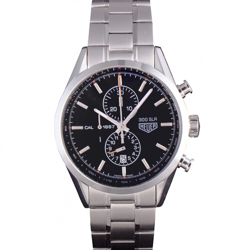 Tag Heuer SLR Cassa in acciaio inossidabile lucidato Quadrante nero Cinturino in acciaio inossidabile