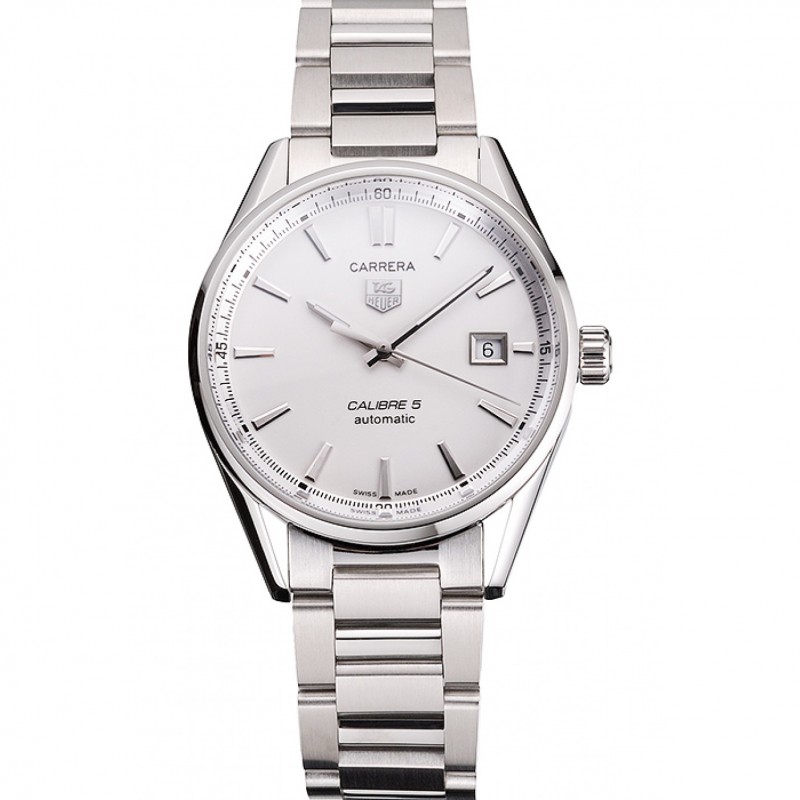 Tag Heuer Carrera Calibre svizzero 5 Silver caso quadrante e bracciale in acciaio