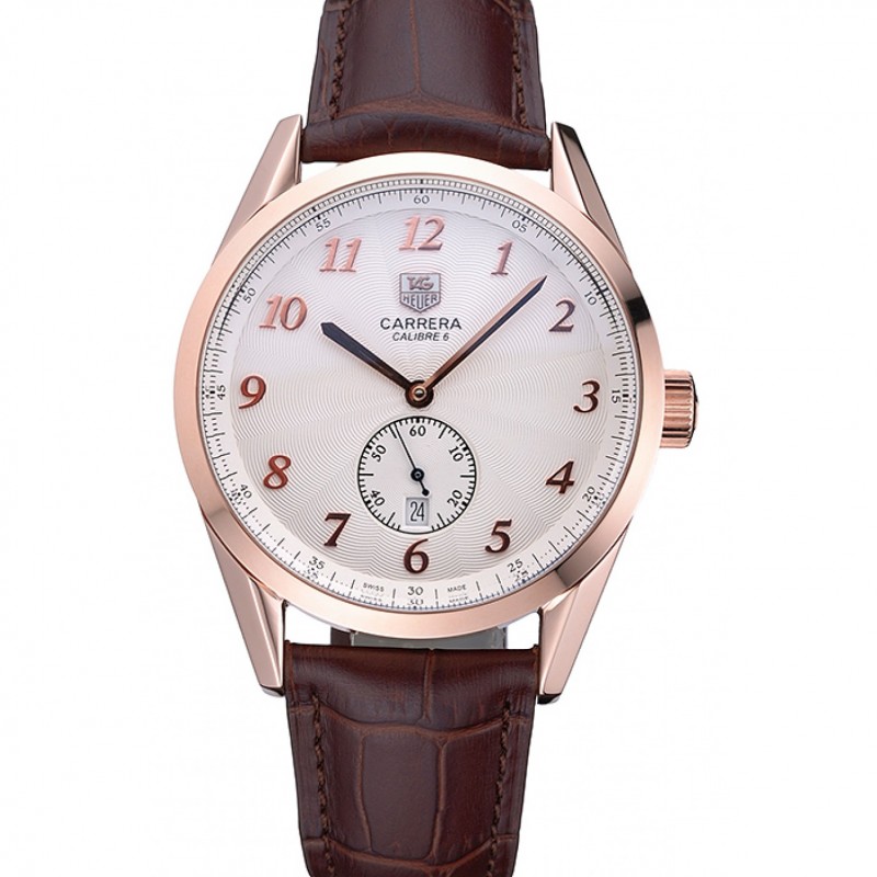 Tag Heuer Carrera cassa in oro rosa quadrante bianco in pelle marrone 98245 Strap
