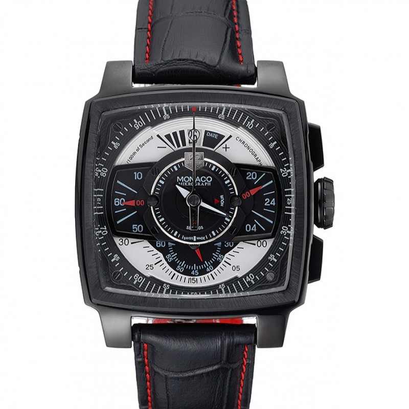 Tag Heuer Monaco Nero-Rosso perforato Cinturino in pelle Quadrante nero 80309
