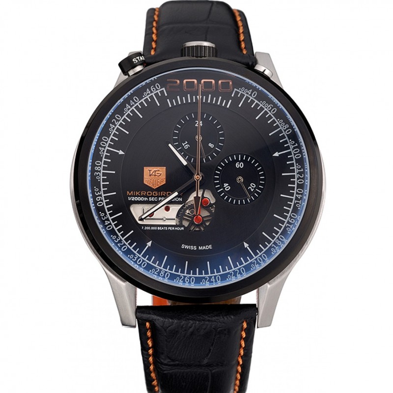 Tag Heuer Mikrotimer quadrante nero nero perforata Cinturino in pelle 622.072