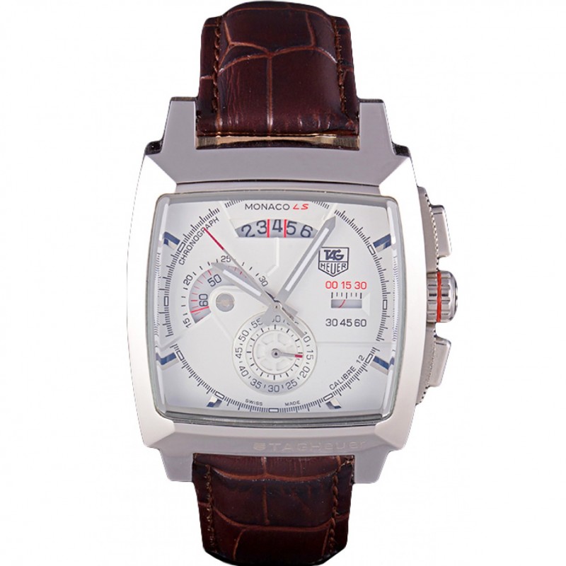 Tag Heuer Monaco spazzolato Cassa in acciaio quadrante bianco in pelle marrone 98173 Strap