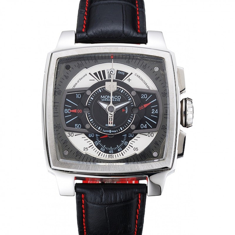 Tag Heuer Monaco Nero-Rosso perforato Cinturino in pelle Quadrante nero 80309