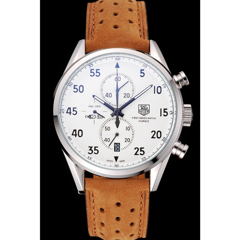 Tag Heuer Carrera SpaceX-7 quadrante bianco argento Cassa in acciaio Brown cinturino in pelle scamosciata