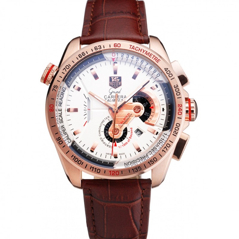 Tag Heuer Carrera cassa in oro rosa quadrante bianco in pelle marrone 98244 Strap