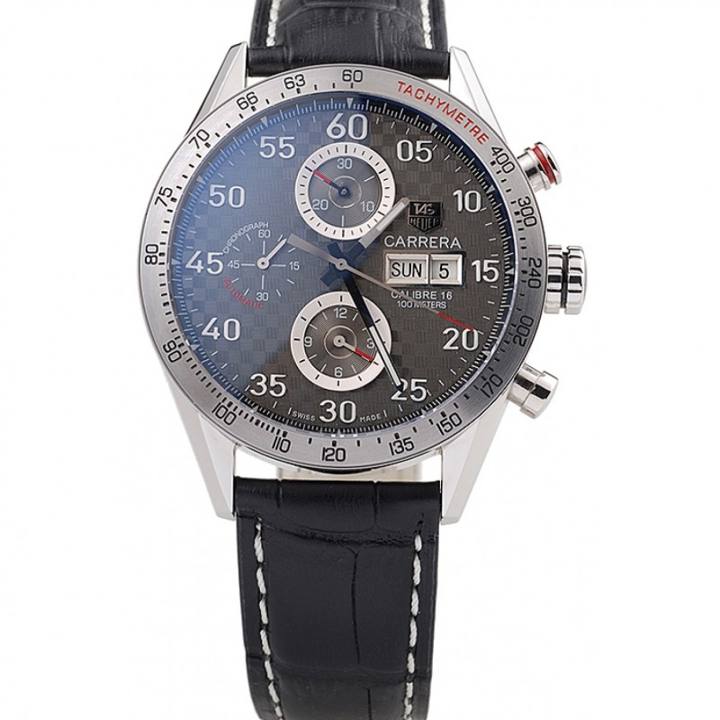 Tag Heuer in pelle svizzero Carrera tachimetrica Lunetta cinturino nero a scacchi Brown Dial