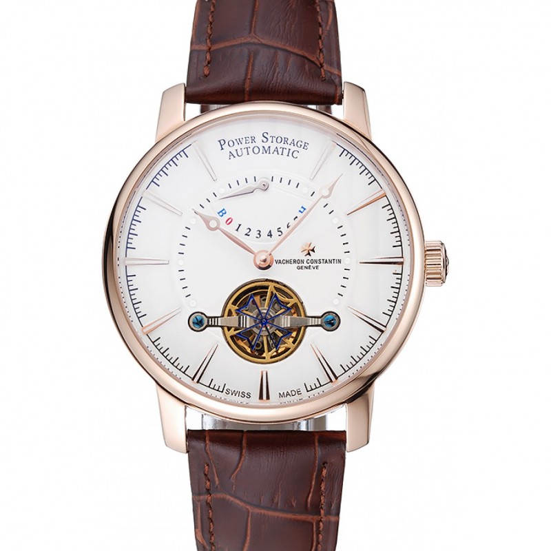Vacheron Constantin Tourbillion Power Reserve quadrante bianco in pelle oro bracciale Caso Brown 1454274